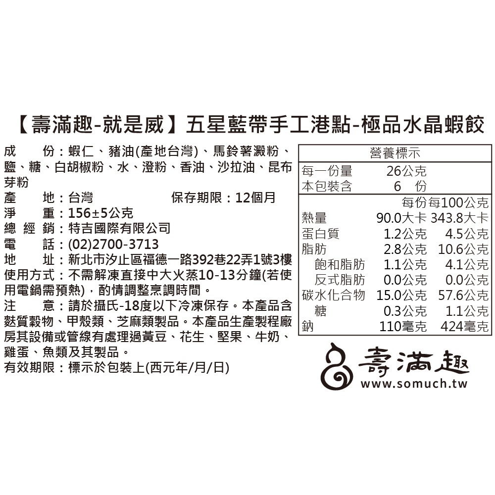 1.商品組合/規格:【壽滿趣】藍帶五星私房港點 - 極品水晶蝦餃6個