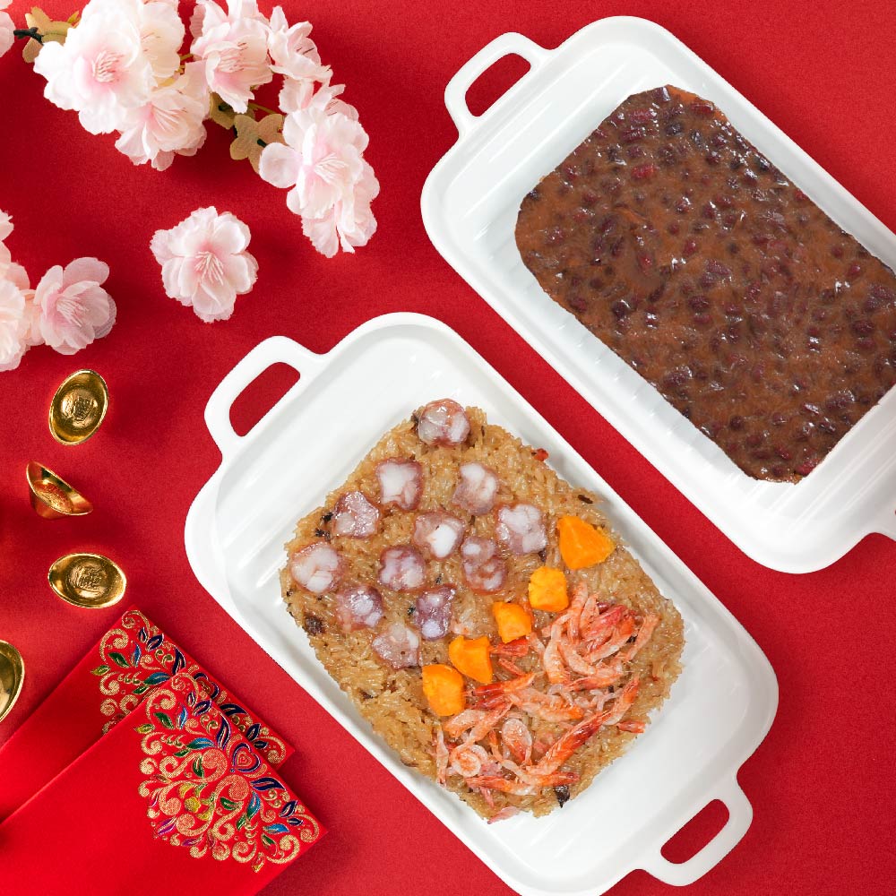 成 份:櫻花蝦臘味米糕-糯米、沙拉油、砂糖、臘腸(產地台灣)、 鹹蛋黃、櫻花蝦、水、紅蔥、鹽、白胡椒粉、昆布粉。壽滿趣紅豆年糕-糯米漿、粘米漿、紅豆、玉米粉、澄麵、 馬蹄粉、水、沙拉油、椰漿、黑糖、紅糖