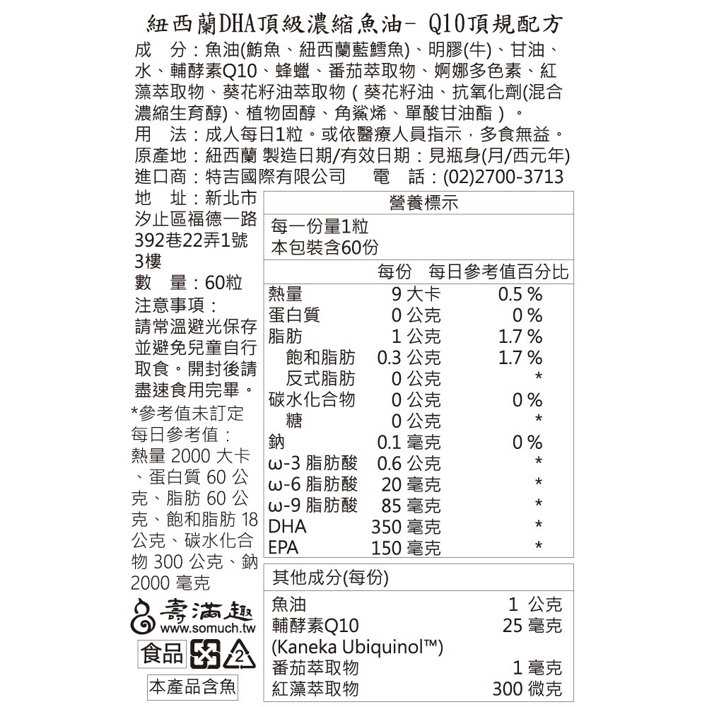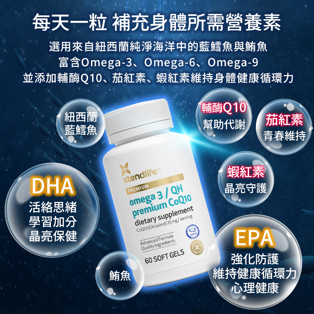 【xtendife】紐西蘭DHA頂級濃縮魚油膠囊-Q10 頂規配方