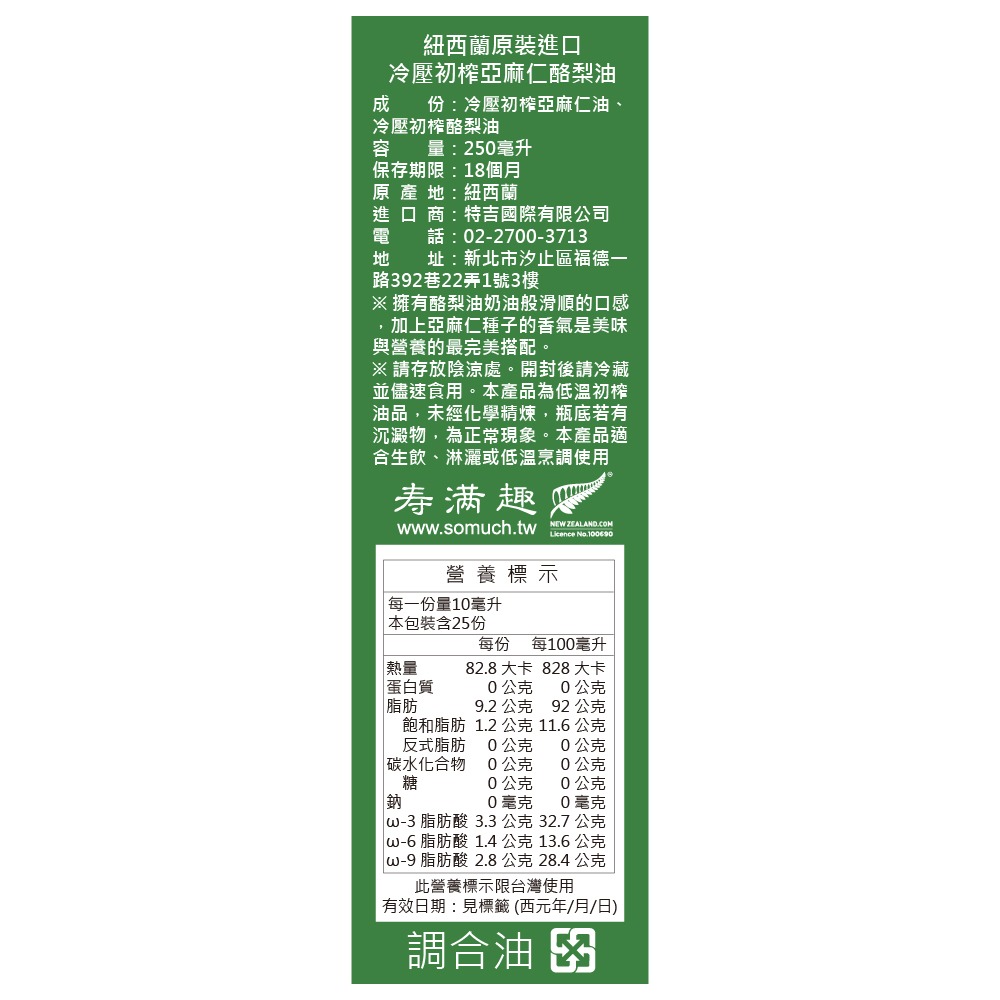 商品品名:Somuch 紐西蘭頂級冷壓初榨亞麻仁酪梨油