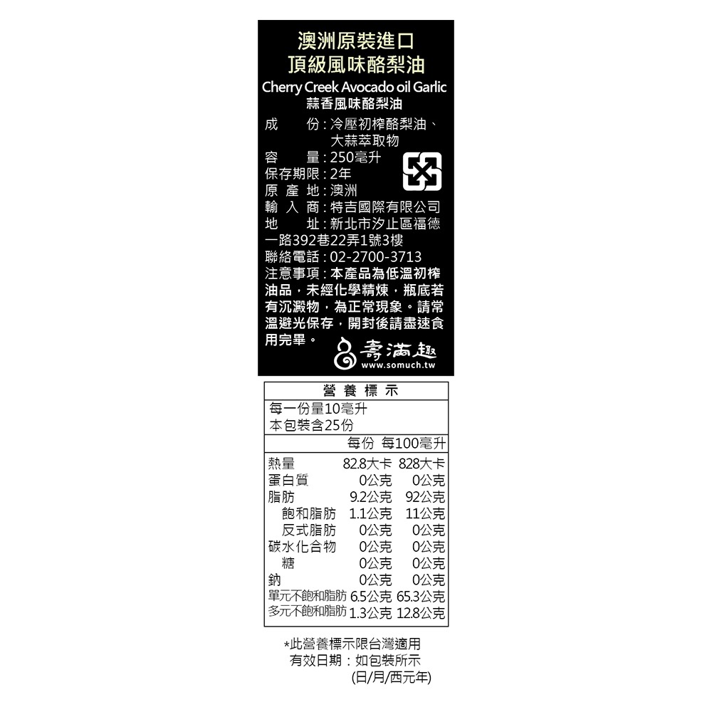 Somuch 冷壓初榨蒜香酪梨油/酪梨油醋醬