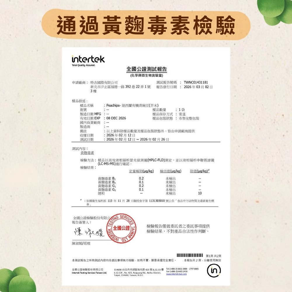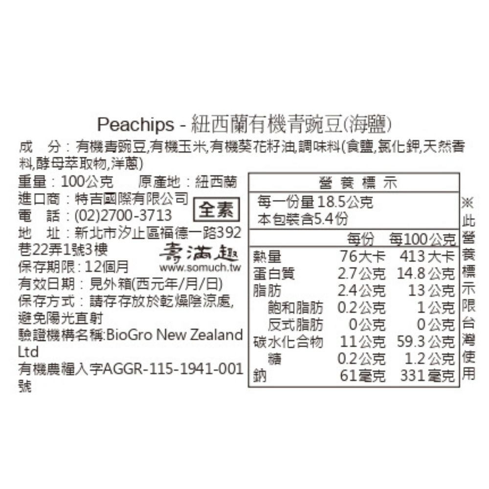 2.商品品名:peachips紐西蘭有機青碗豆(鹽味)